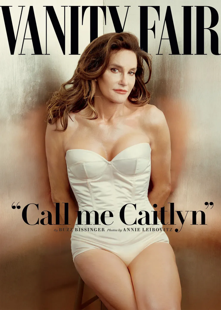同年布鲁斯·詹纳以凯特琳·詹纳的名字首次登上《名利场》封面,被媒体吹捧为无与伦比的勇敢壮举。作为一位两次离婚且有六个成年子女的男性,詹纳以性感的中年女性形象出现在时尚杂志封面迎合男性凝视。